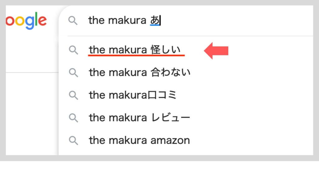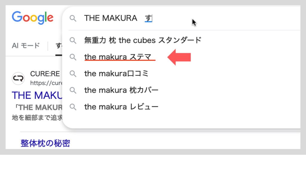 キュアレ「THE MAKURA」と調べると、ステマや怪しいといったキーワードも表示されます。