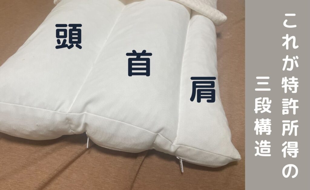 公式サイトによるとこの「三段構造」は特許を取得しているために、同じ形状の枕は絶対に表れないとのことです。