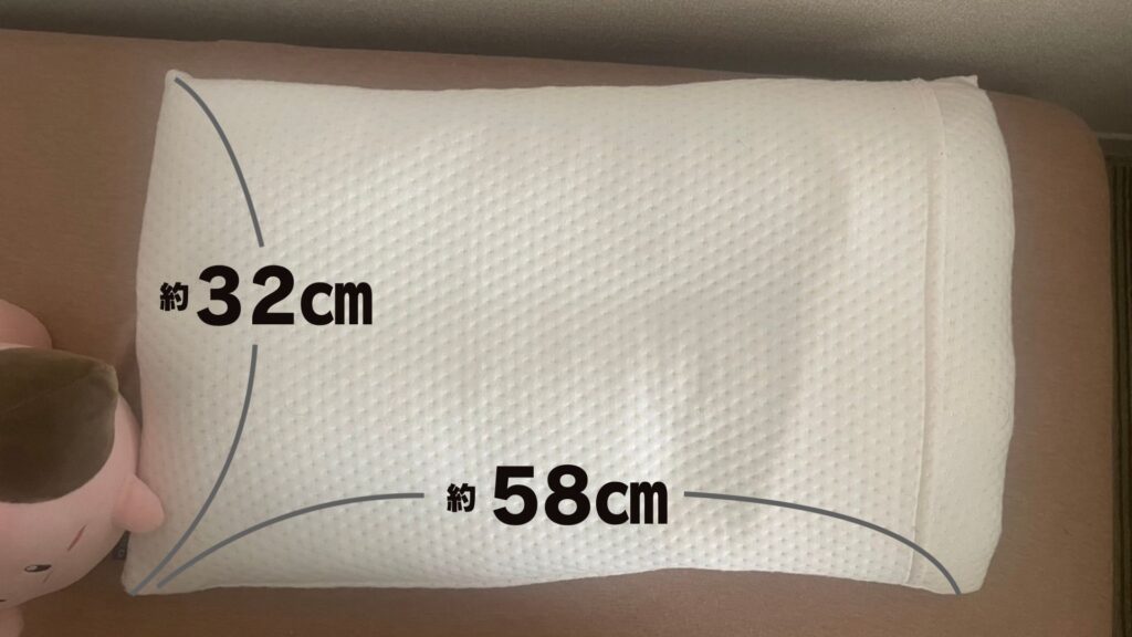 公式サイトの説明によると、一般的な枕の幅43cmに対してTHE MAKURAは約60cmの幅があるとのこと。