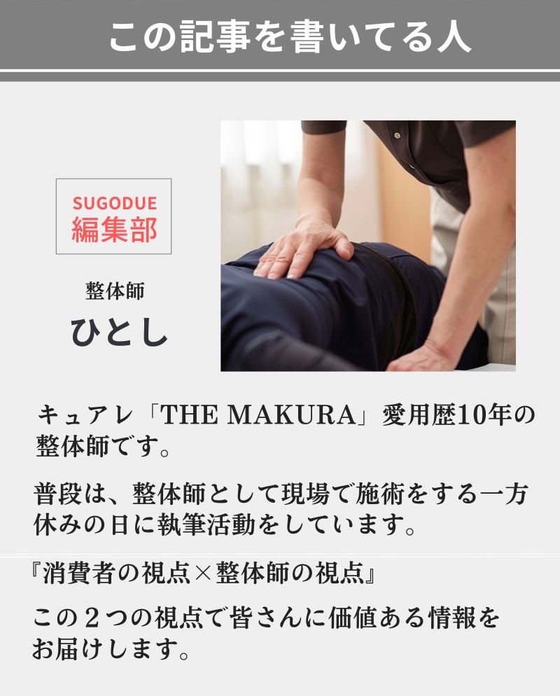 キュアレ「THE MAKURA」は全国の整体院や接骨院で取り扱われており、私の所属院でも採用されていたため、社販価格で購入できました(笑)