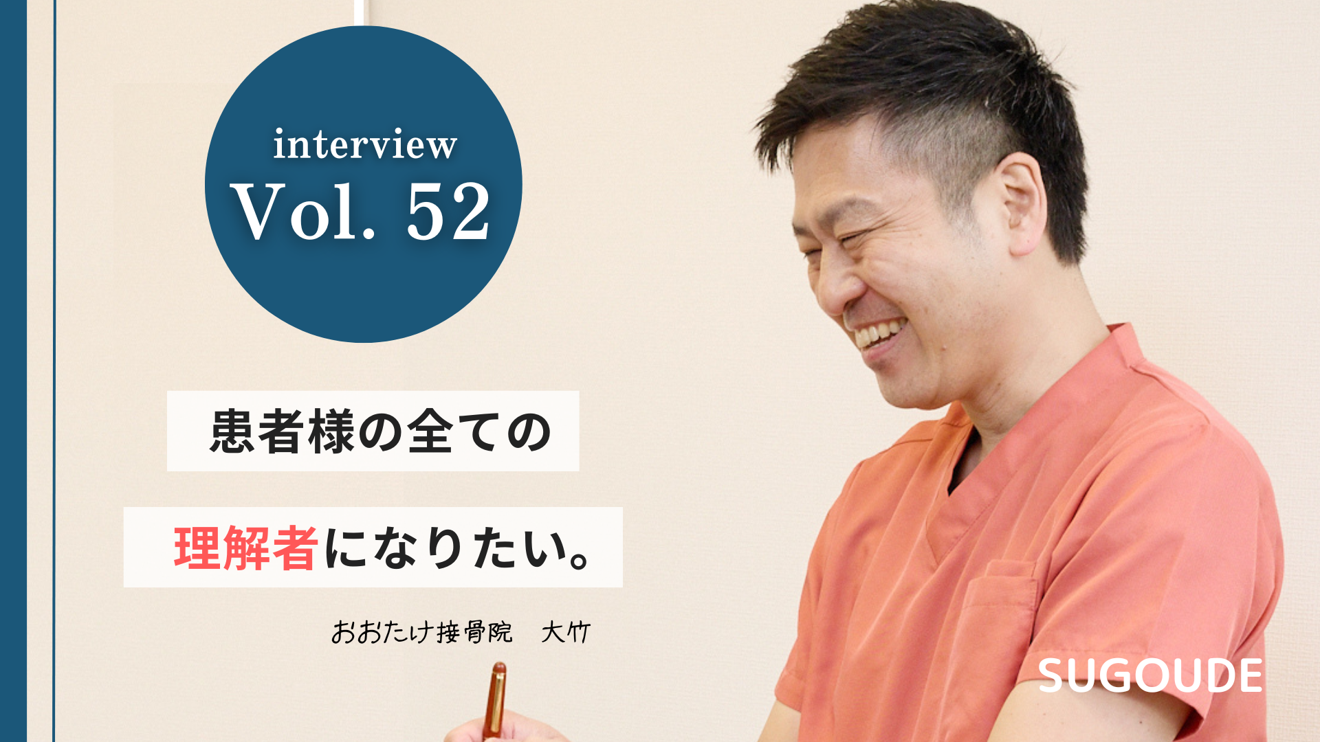 はじめまして!おおたけ整骨院の大竹です。この度は取材をしに来てくださり有難うございます。