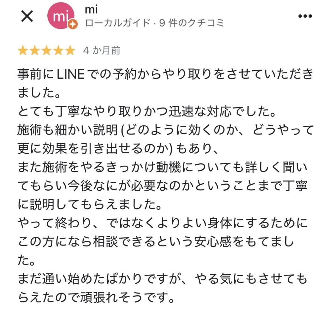 先ほど、makaniの施術を受けた方の口コミを拝見しましたが、患者様の喜びの声が沢山ありました。※2025年12月時点