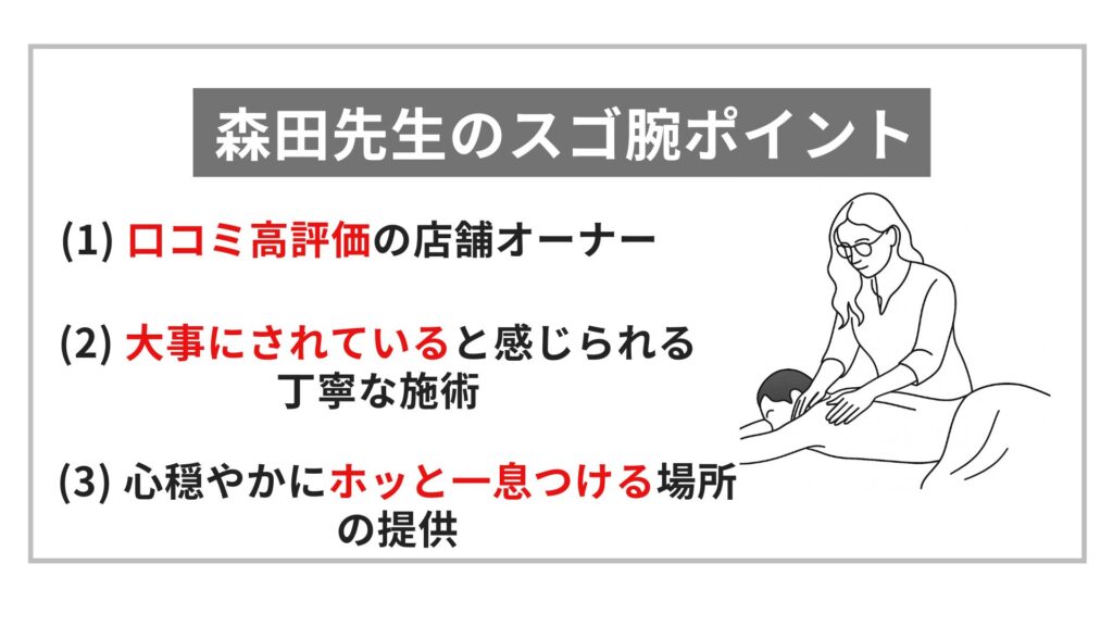 森田先生のお店で体験できる手技の特徴を教えていただけますか?