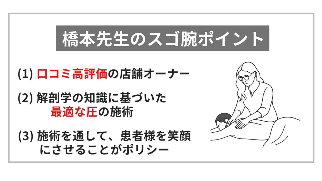 橋本先生のお店で体験できる手技の特徴を教えてください。