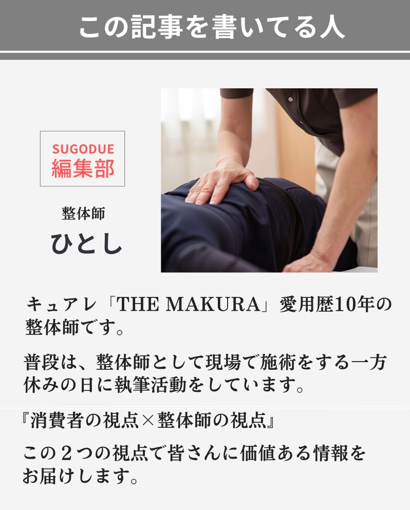 そんな私が、税込39,600円もするキュアレの「THE MAKURA」を使うことになったのは、整体師として勤務していた以前の職場がきっかけです。