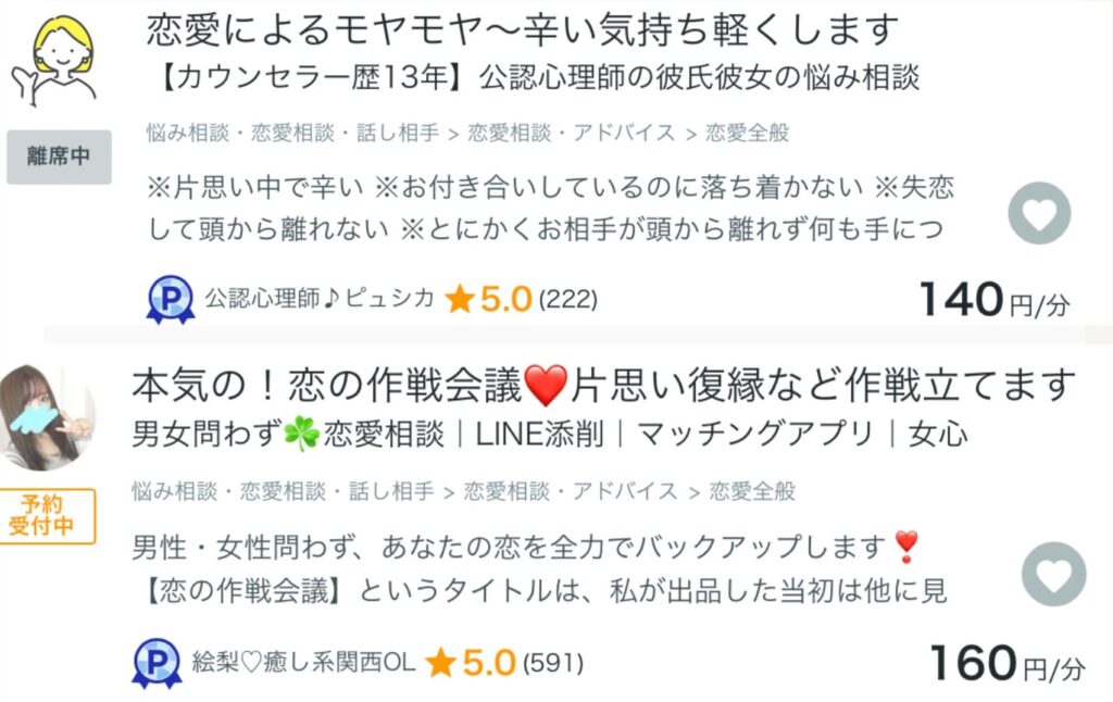 私も以前まで、ココナラ内で「整体師に恋をした女性専門」の電話カウンセラーとして活動していた過去があります。